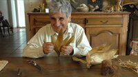 4 juillet 2017, par JLGJacqueline Bonneau, agricultrice gersoise à la retraite, réalise des fabrications éphémères à partir de matériaux trouvés dans le paysage : feuilles, herbe, paille, fleurs... Elle crée des objets pouvant imager des comptines : poules, lapins, canards, souris, papillons...